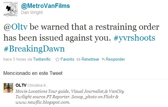 No sé mucho más. Rob no estaba allí. intenté hacer una foto pero un camarero vino hacia nosotros y dijo "Nada de fotos, por favor", y yo dije: "¡Pero es Kristen Stewart!", y él me contestó: "¿Te gustaría que te hiciese una foto mientras estás comiendo?", me respondió secantemente.