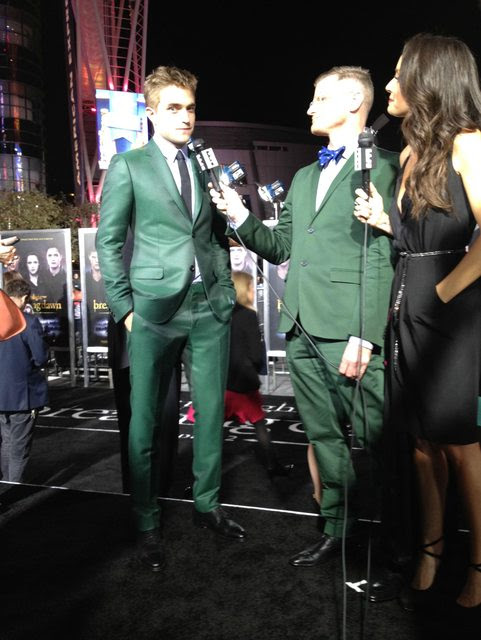 Hola ladies, tuve el placer increíble de trabajar con E! ayer por la noche y me quedé con el conductor y el equipo de camaras durante TODAS las entrevistas de la premiere mundial en LA! Mi primo es el camarografo de E! y él me hizo entrar! El productor de E! me hizo trabajar dándole al conductor y a la conductora las tarjetas con las preguntas durante las entrevistas! Fue increíble y algo que nunca olvidaré. Además, tuve el placer de charlar con Josh Horowitz de MTV también. Su plataforma estaba a centímetros de la nuestra y fue tan dulce! Le pregunté si sabía donde estaban las chicas de Robsessed y no sabía pero estaba claramente interesado. Hablamos más y después del show, su última entrevistada fue Kristen y cuando su equipo empacó se veía tan triste. Simplemente se quedó ahí mirando el suelo mientras ellos empacaban las cosas. Finalmente le pregunté si estaba bien y él dijo "No, no puedo creer que terminó"!