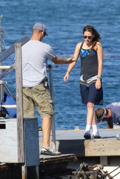 Esto totalmente luce como que #KristenStewart esta vistiendo un bañador @SpeedoUSA en el set de su nueva película #CampXRay!