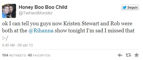 Literalmente toda mi escuela está en el concierto de Rihanna. Una chica acaba de twittear que está con Robert Pattinson, Kristen Stewart y las Kardashians